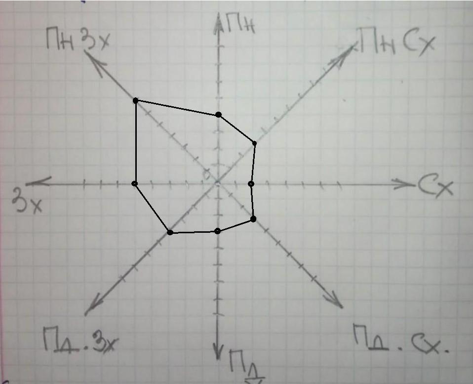 Потім всі ці точки з'єднуємо і отримуємо розу вітрів.