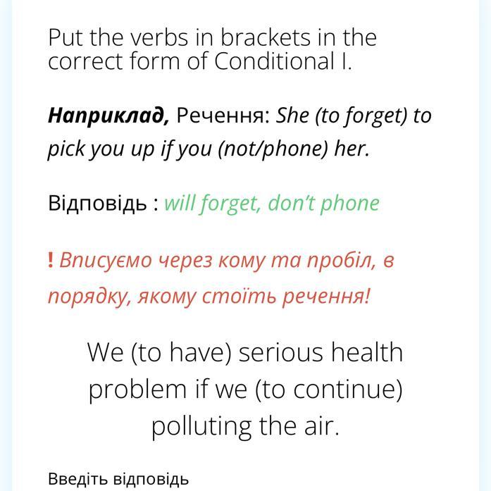 Відповідь: We will have serious health problems if we continue polluting the air.