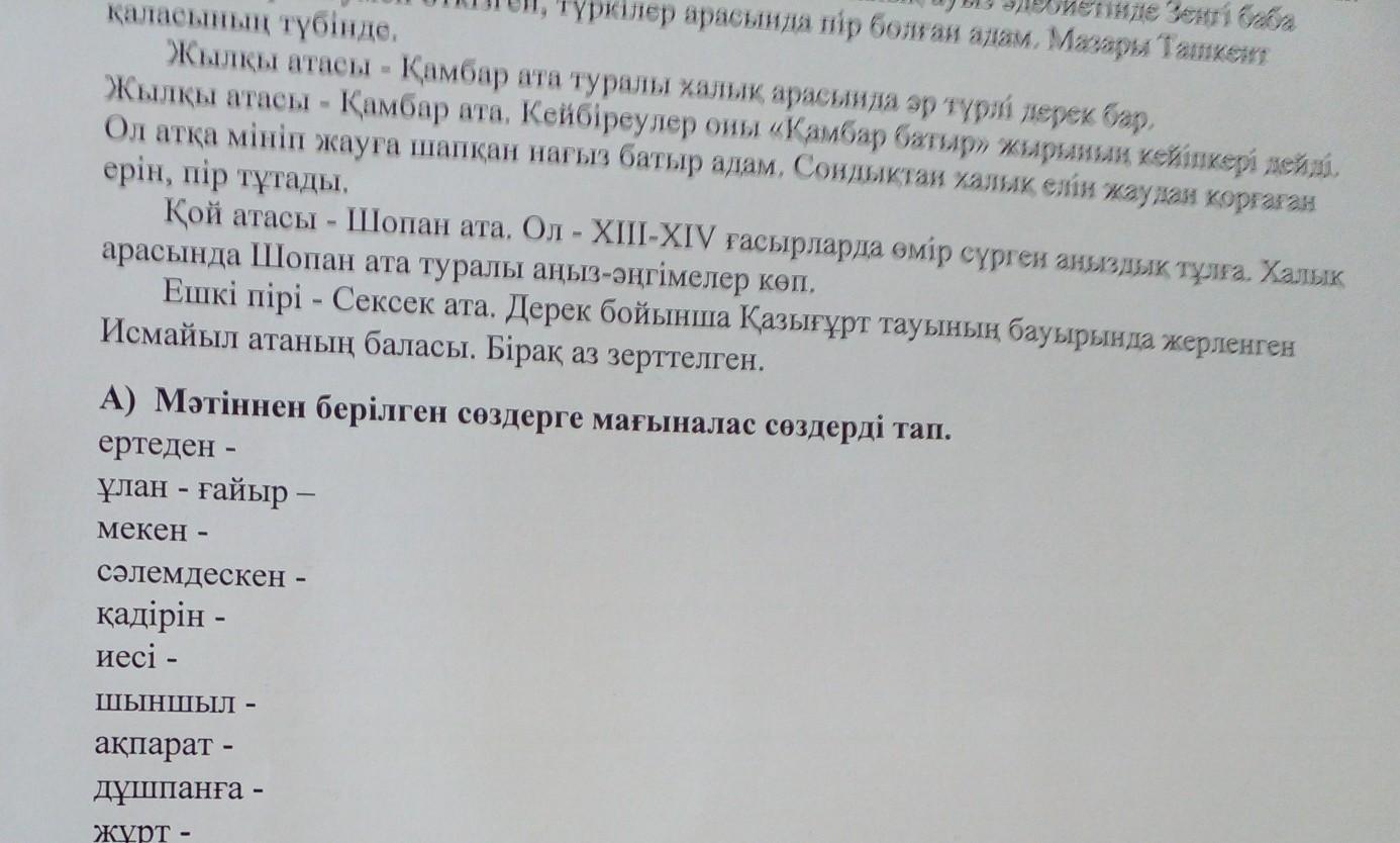 A) Мәтіннен берілген сөздерге мағыналас сөздерді тап.