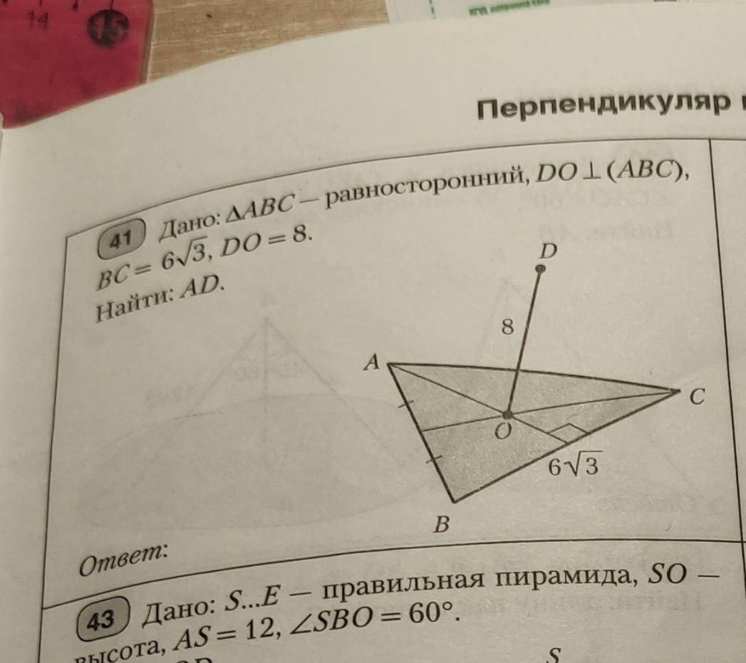 АD=√(DO²+AO²)=√(8²+6²)=10 ед