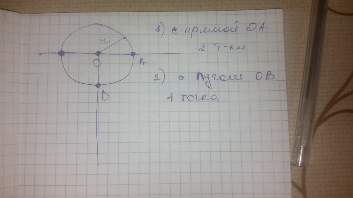 Начертите окружность ω (О;r). Сколько точек пересечения этой окружности: