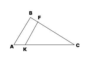Знайдіть кофіціент подібности трикутника KFC і ABC якщо AK = 3 см і AC = 21 см.