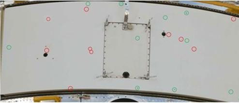 Количество ударов, полученных панелью, можно примерно оценить в сумме количества зеленых и красных кружочков на изображении. По указанным размерам площадь радиаторной панели составляет 2,2 м × 0,8 м = 1,76 м².