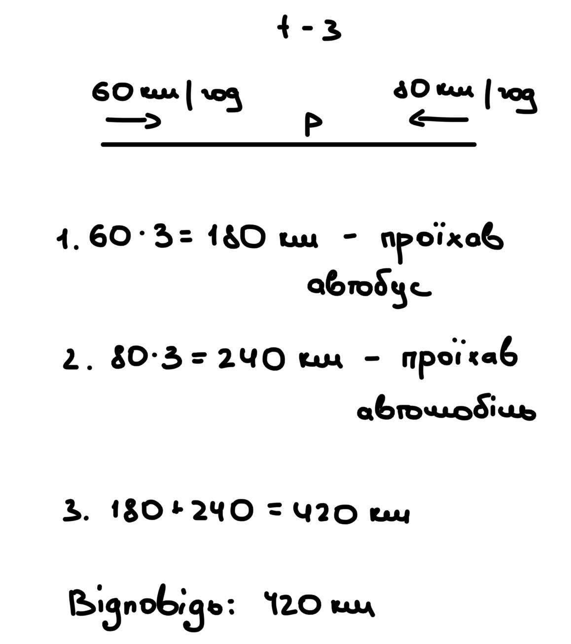 З ДВОХ МІСТ ОДНОЧАСНО НАЗУСТРІЧ ОДИН ОДНОМУ ВИЇХАв АВТОБУС І ЛЕГКОВИЙ АВТОМОБІЛЬ.ШВИДКІСТЬ АВТОБУСА 60 КМ\ГОД,А ЛЕГКОВОГО АВТОМОБІЛЯ - НА 80 КМ\ГОД .ЧЕРЕЗ 3 ГОДИНИ ВОНИ ЗУСТРІЛИСЯ.ЯКА ВІДСТАНЬ МІЖ МІСТАМИ? ДОПОМОЖІТЬ БУДЬ ЛАСКА!!!