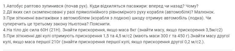 1.Пасажири будуть відхилятися вперед, оскільки тіло на якому вони знаходяться (автобус) зупинився, а пасажири зберігають свою інерцію руху і спробують продовжити рух у напрямку, в якому вони рухалися до зупинки.