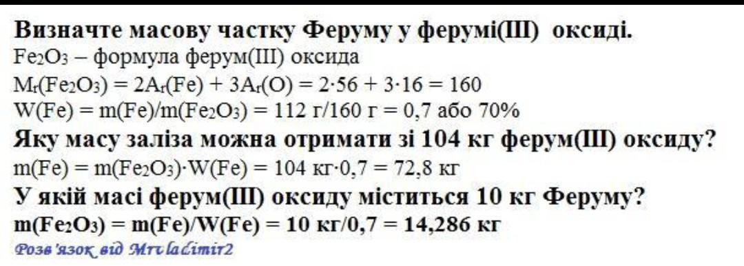 Для расчета массы железа необходимо знать химическую формулу ферум(III) оксида (Fe2O3), а затем использовать молярные пропорции между массой Fe2O3 и массой Fe.
