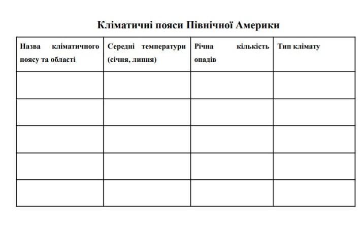 1. Кліматичні пояси — великі смуги земної поверхні, які виділяють за кліматичними умовами і які мають характер широтних поясів (виділяють за особливостями режиму температури та опадів).