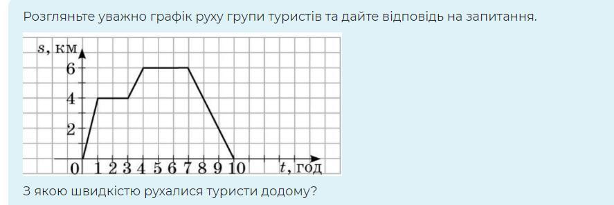 Розгляньте уважно графік руху групи туристів та дайте відповідь на запитання.
