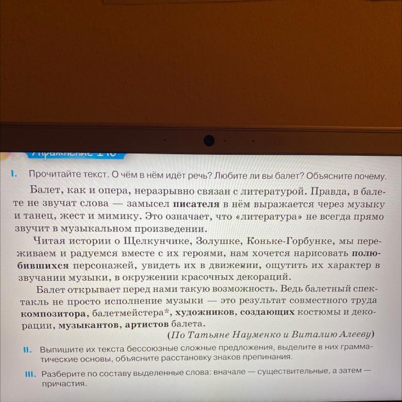 [Правда, в балете не звучат слова] - [замысел писателя в нем выражается через музыку и танец, жест и мимику].