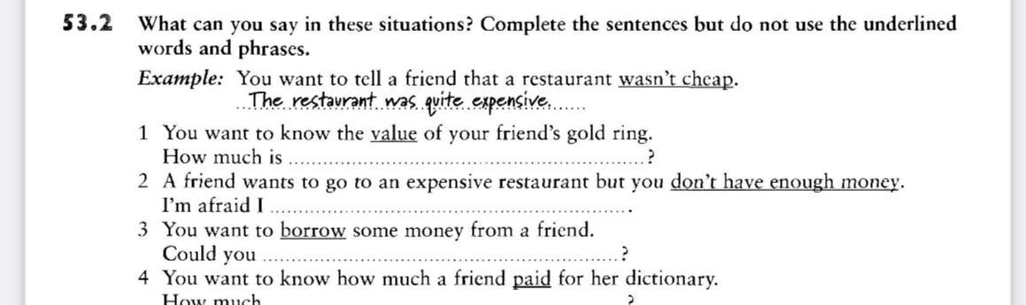 What can you say in these situations? Complete the sentences but do not use the underlined words and phrases.