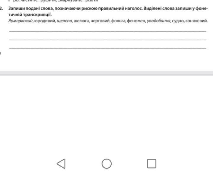 Запиши подані слова, позначаючи рискою правильний наголос. Виділені слова запиши у фонетичній транскрипції?????