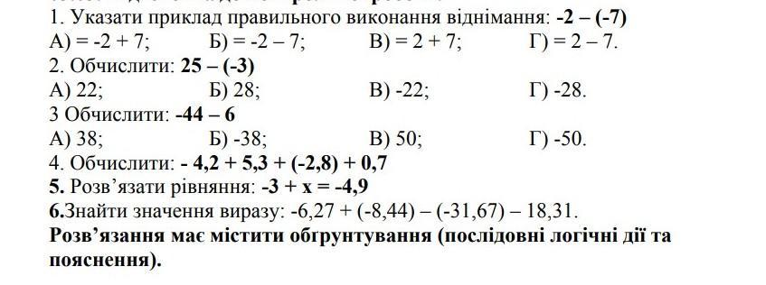 1. -2-(-7)= -2+7 (оскільки - на - буде +) А