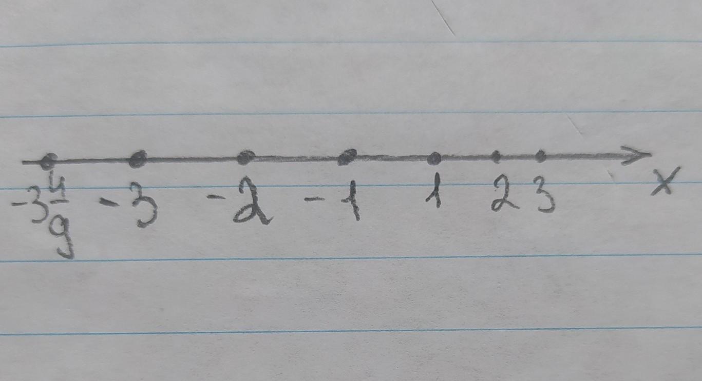 ) Запишите все целые отрицательные числа, большие-3 4/9