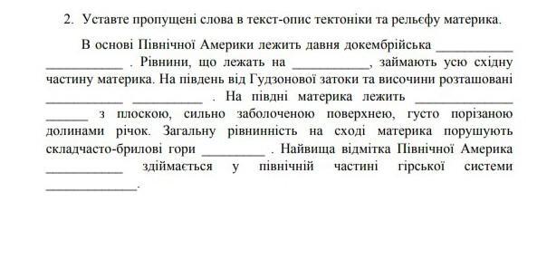 В основі Північної Америки лежить давня докембрійська платформа. Рівнини, що лежать на платформах, займають усю східну частину материка. На південь від Гудзонової затоки та височини розташовані центральні рівнини. На півдні материка лежить Примексиканська низовина з плоскою, сильно заболоченою поверхнею, густо порізаною долинами річок. Загальну рівнинність на сході материка порушують складчасто-брилові гори Аппалачі. Найвища відмітка Північної Америки Мак Кінлі здіймається у північній частині гірської системи Кордильєри.