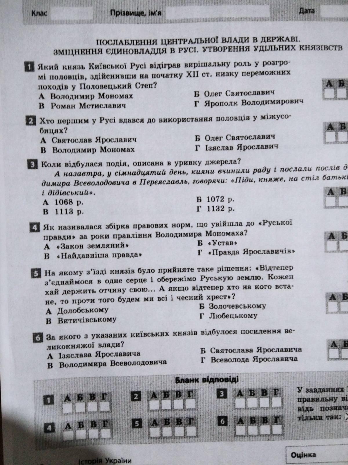 1А; 2Г; 3В; 4Б; 5Г; 6Г удачі