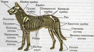 У хребті чітко виділено 5 відділів: шийний, грудний, поперековий, крижовий і хвостовий.