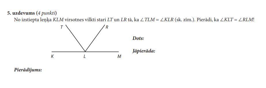 С вершины развернутого угла KLM протянуты лучи LT и LR таким образом, что ∠ TLM = ∠ KLR (см. рис.). Докажи, что ∠ KLT = ∠ RLM!