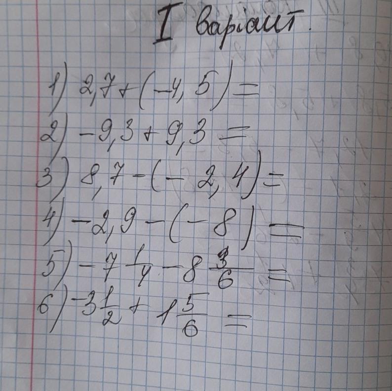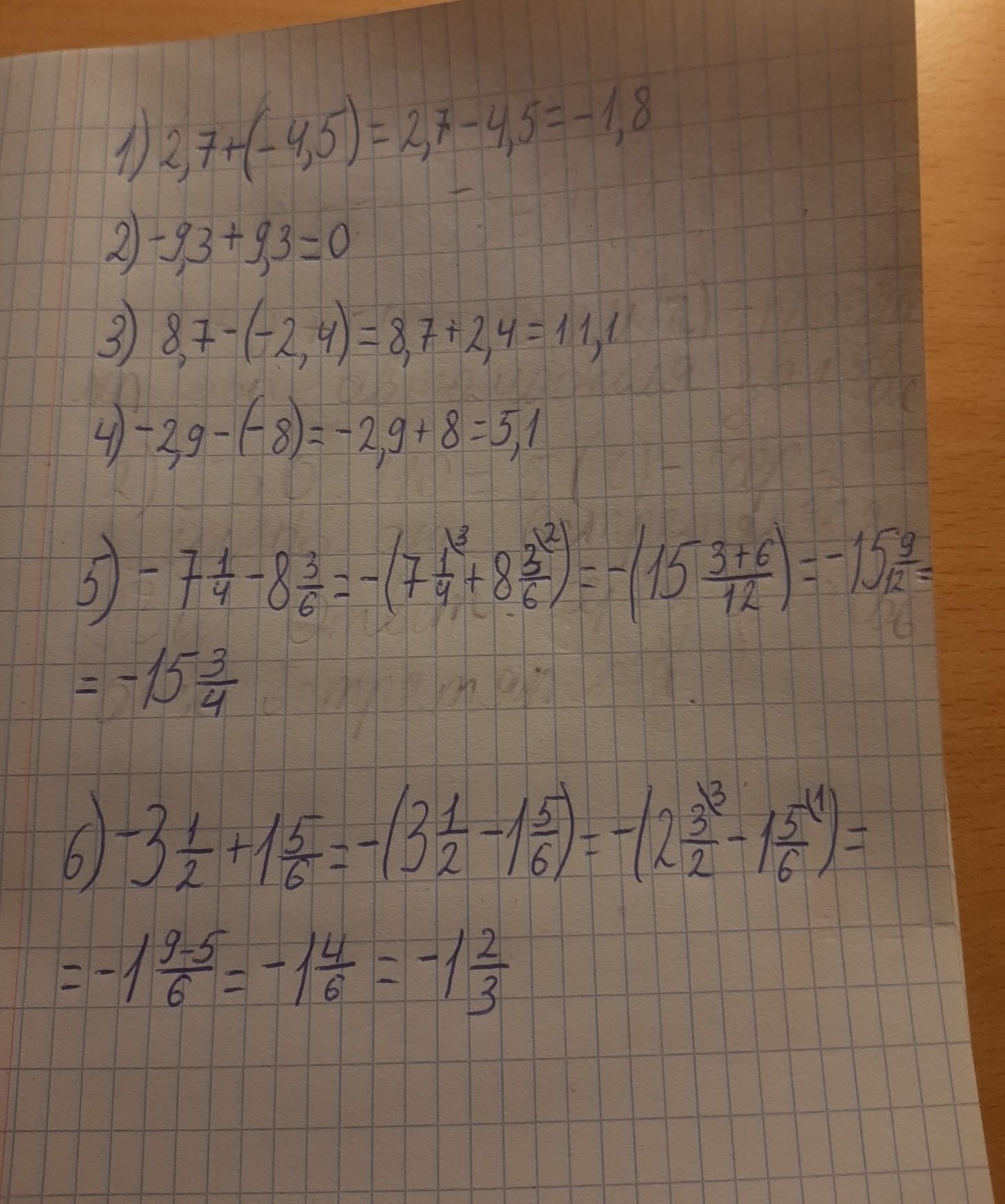 1) 2,7 + (-4,5) = 4,5 - 2,7 = -1,8
