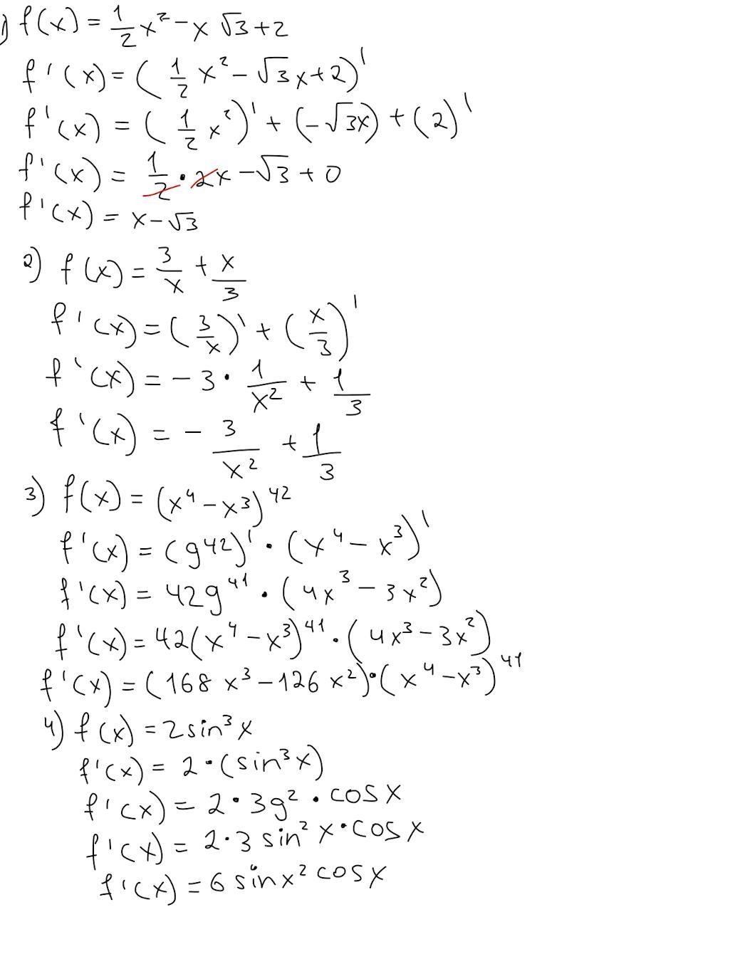 1. 1 ) f '( x ) = ( 1/2 x² - x√3 + 2 )' = 1/2 * 2 *x - 1 *√3 + 0 = x - √3 ;