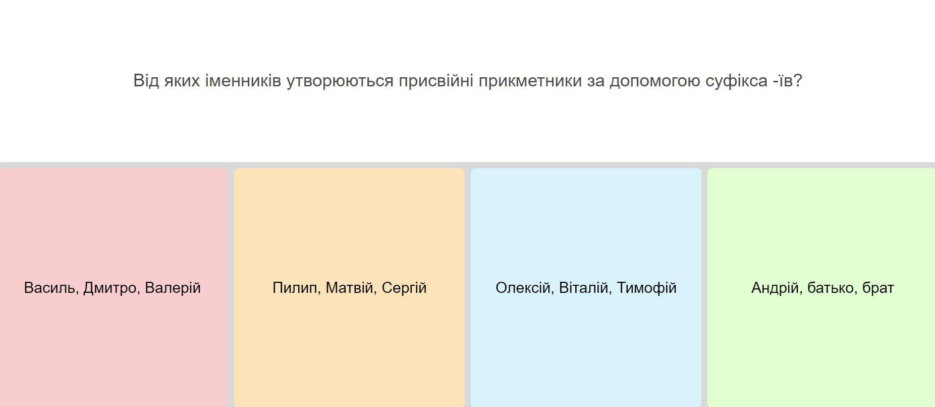 Присвійні прикметники утворюються від іменників, що мають закінчення на голосний звук (-о, -е, -є) або на приголосний звук з відкритим складом (-й).