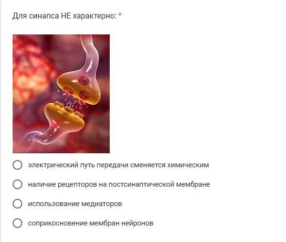 Синапс - это точка контакта между двумя нейронами, где информация передается от пресинаптической (отправляющей) нейрона к постсинаптической (получающей) нейронной клетке. Синапс характеризуется наличием рецепторов на постсинаптической мембране, использованием медиаторов (нейромедиаторов) для передачи информации между нейронами и соприкосновением мембран нейронов. Важно отметить, что в синапсе сигнал передается не электрическим путем, а химическим путем, посредством медиаторов. Таким образом, ответ 1 - неверный, для синапса характерно, что электрический путь передачи не сменяется химическим, а именно электрический сигнал преобразуется в химический для передачи информации между нейронами.