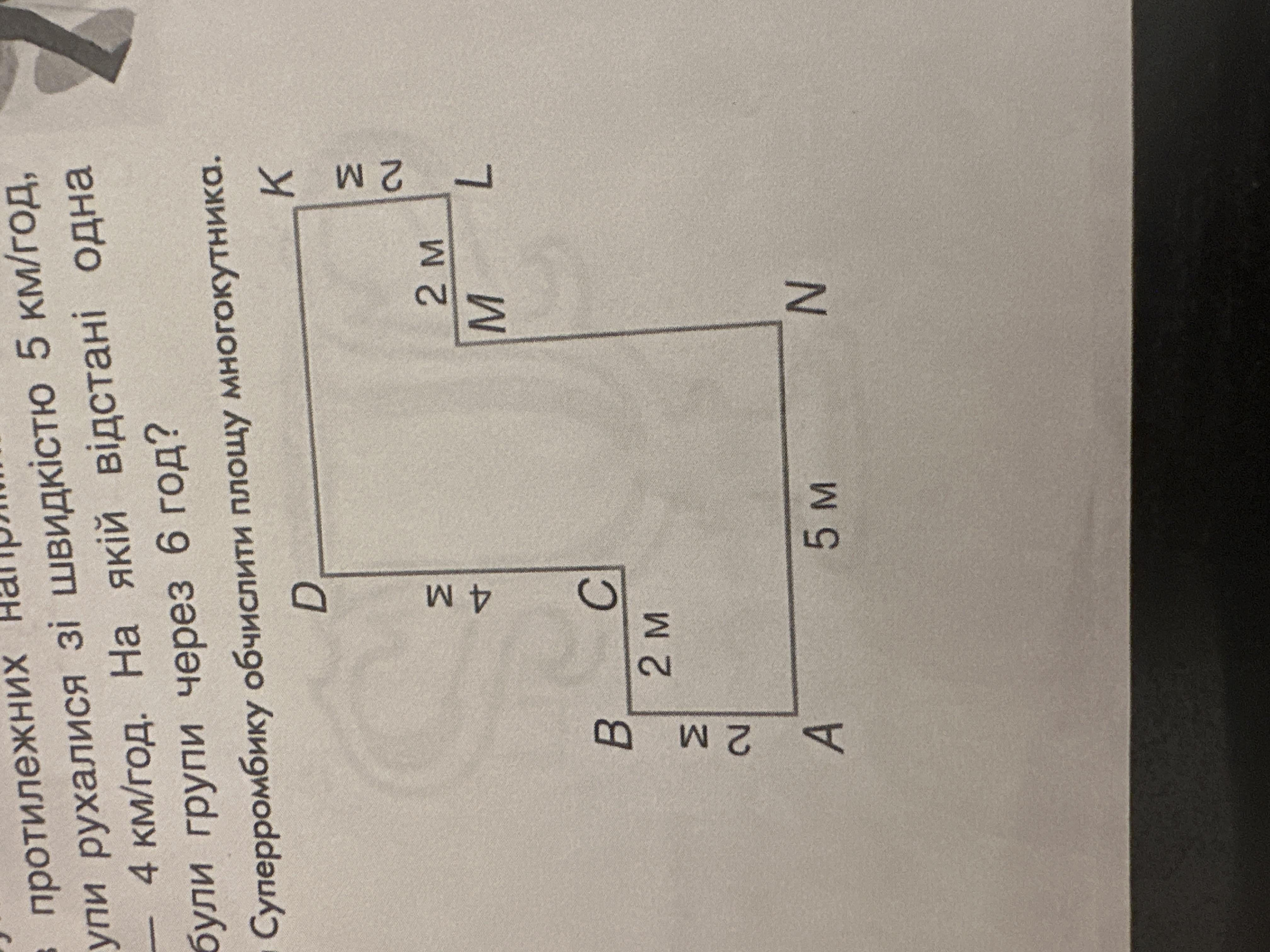 разделим многоугольник на простые фигуры (квадраты, прямоугольники), стороны которых легко найти (см рисунок ниже)