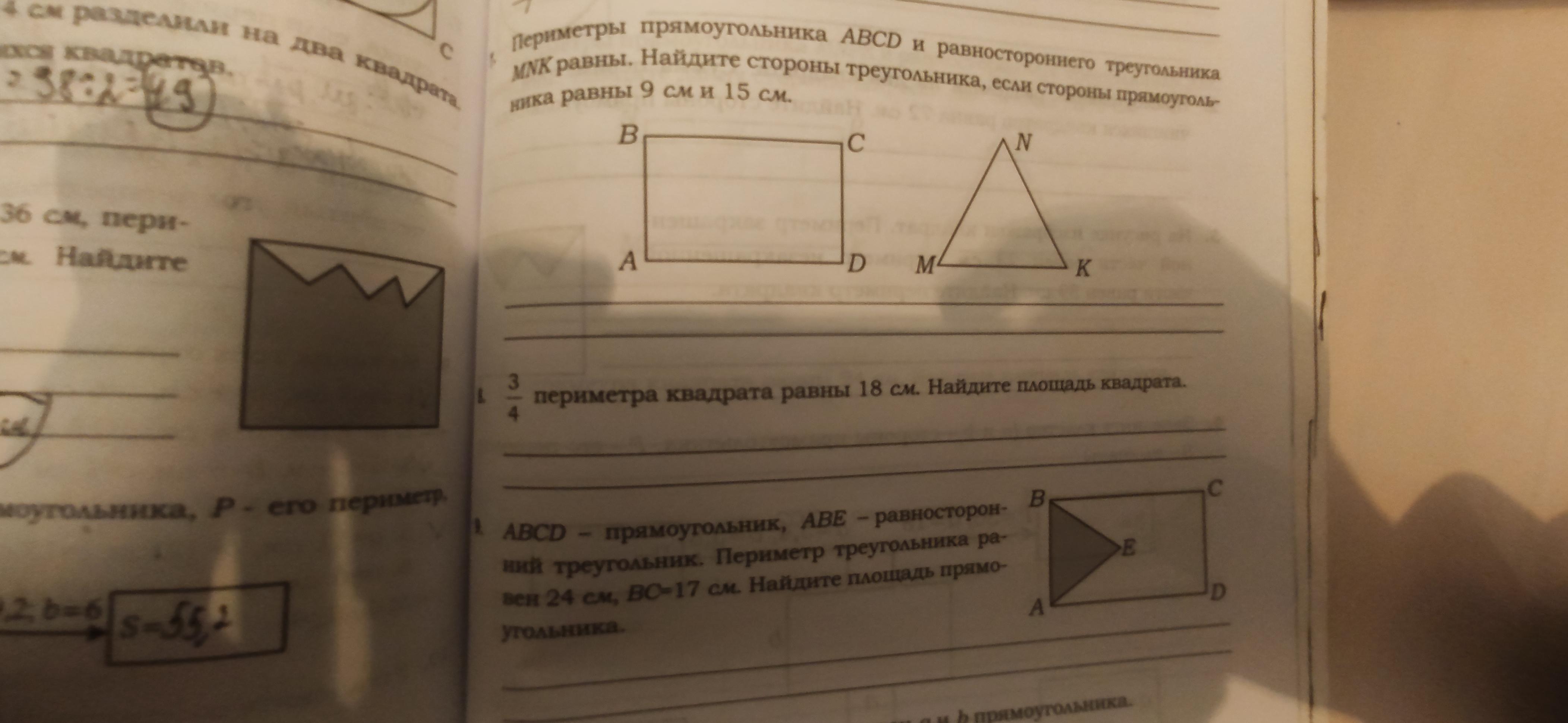 Где нарисован квадрат и треугольник это 7 а где нарисован прямоугольник с ABCD это 9