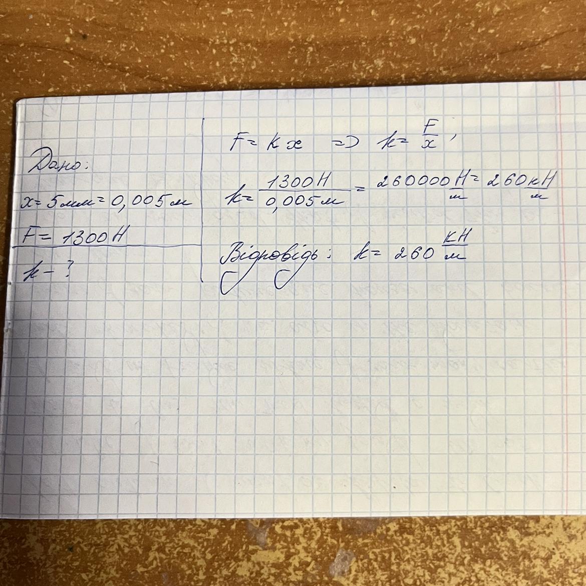 Відповідь: k = 260 кН/м