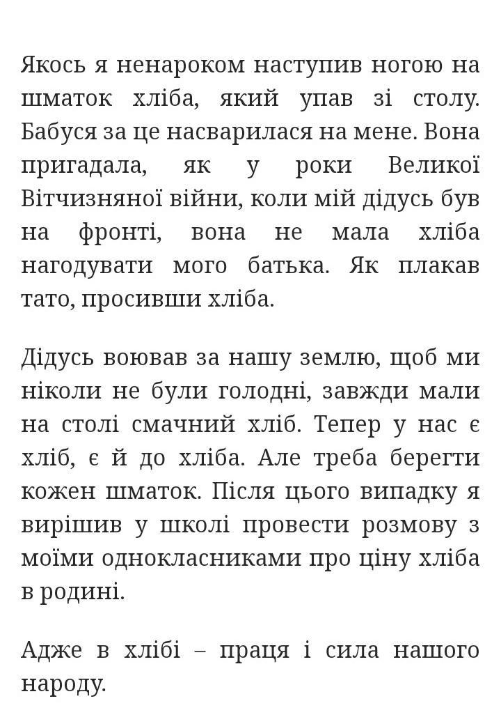 привіт треба написати твір роздум 7-8 речень на тему шануймо хліб і ще як що дудете списувати з яогось сайту то пж з останього нехочу щоб в мене і однокласників були одинакові твори