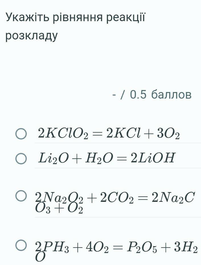 З наведених в умові реакцій тільки в першій реагент це одна складна речовина (хлорит калію ), з якої утворюється кілька речовин (складний хлорид калію