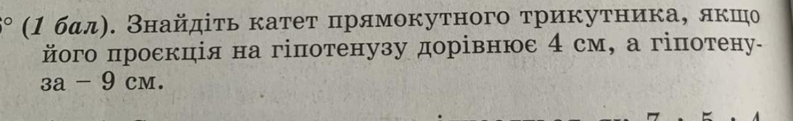 Квадрат катета дорівнює добутку гіпотенузи і проекції цього катета на гіпотенузу.
