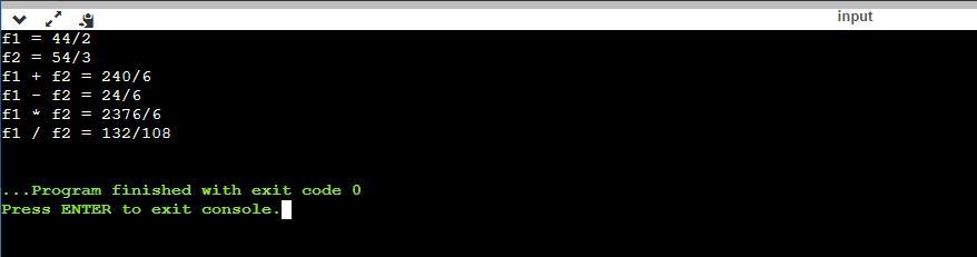 std::cout«"Enter the first fraction: ";std::cin»fr1.num »fr1.denum;