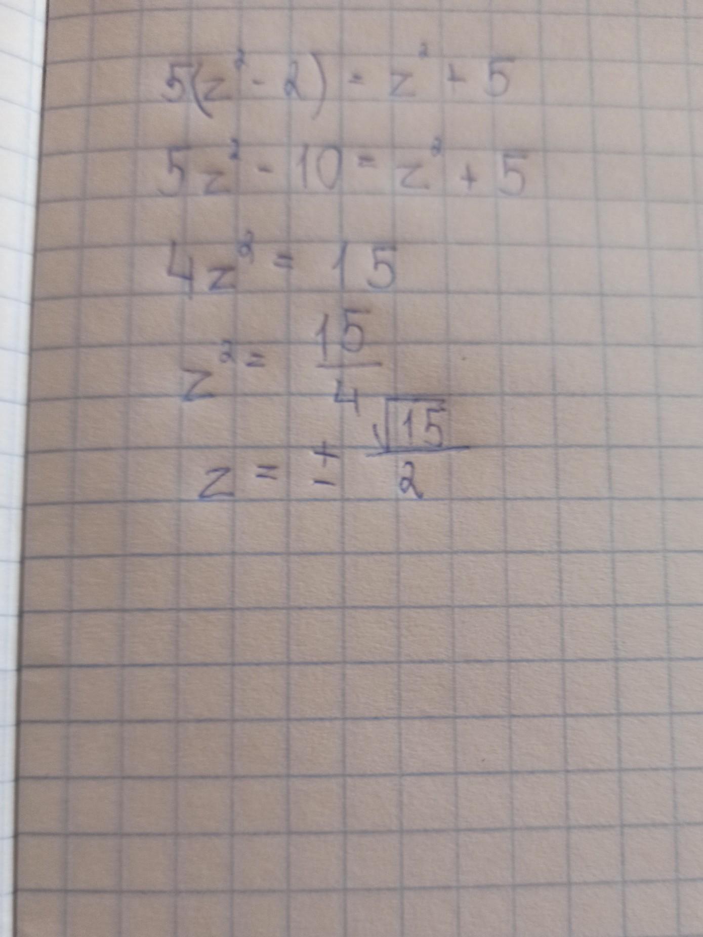 Помогите с уравнением 5(z² - 2) = z² + 5. Известен ответ (z = √15/2 ; z = -√15/2). Мне нужно решение.
