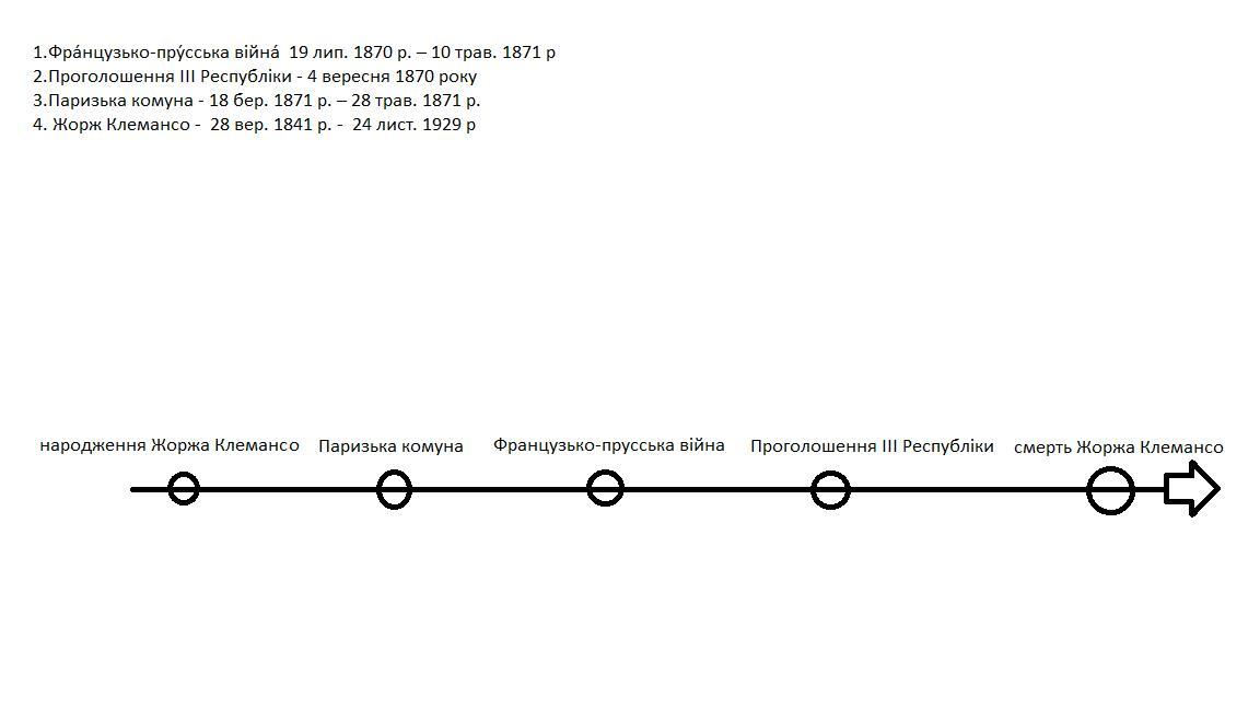 Виготовте чи намалюйте в зошиті ілюстровану стрічку часу, де відобразіть події: французько-прусської війни, проголошення III Республіки, Паризької комуни, життєпису Жоржа Клемансо СРОЧНО!!!!!!!