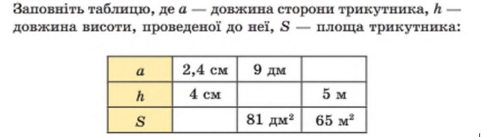 S=1/2a*h