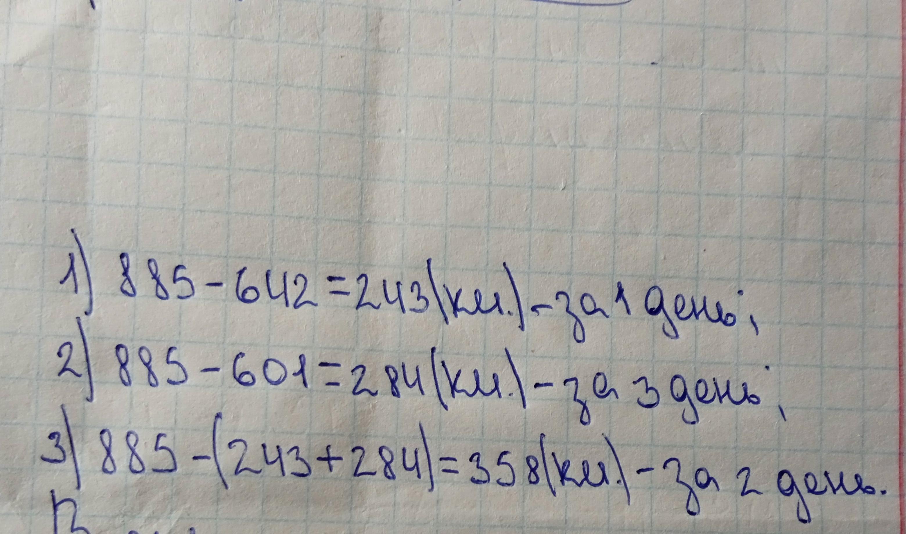 А за другий і третій 642км. Скільки кілометрів проплив теплохід кожного дня окремо .