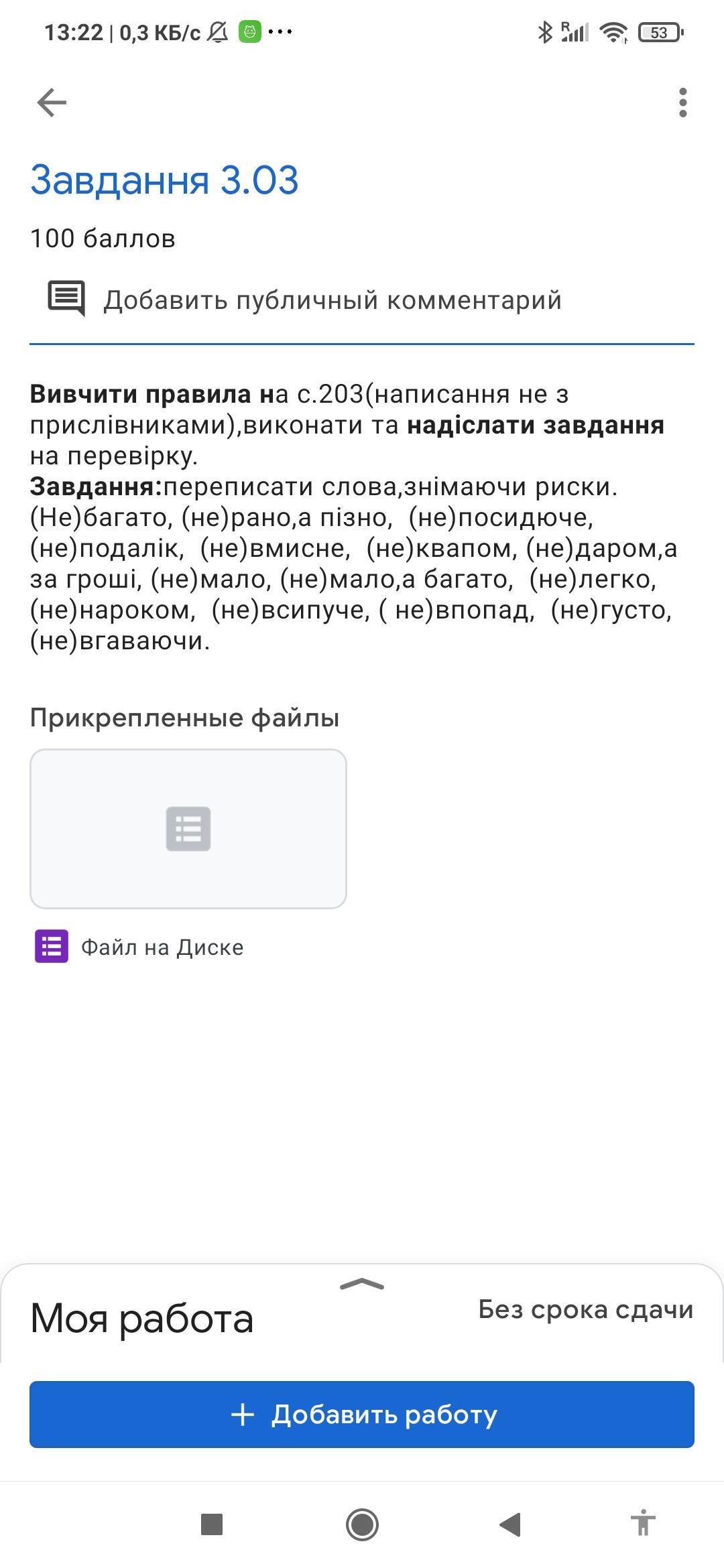 Не багато,не рано, а пізно, непосидюче, неподалік, невмисне, неквапом, не даром а, за гроші, не легко, ненароком, невсипуче, невпопад, не густо, невгаваючи.
