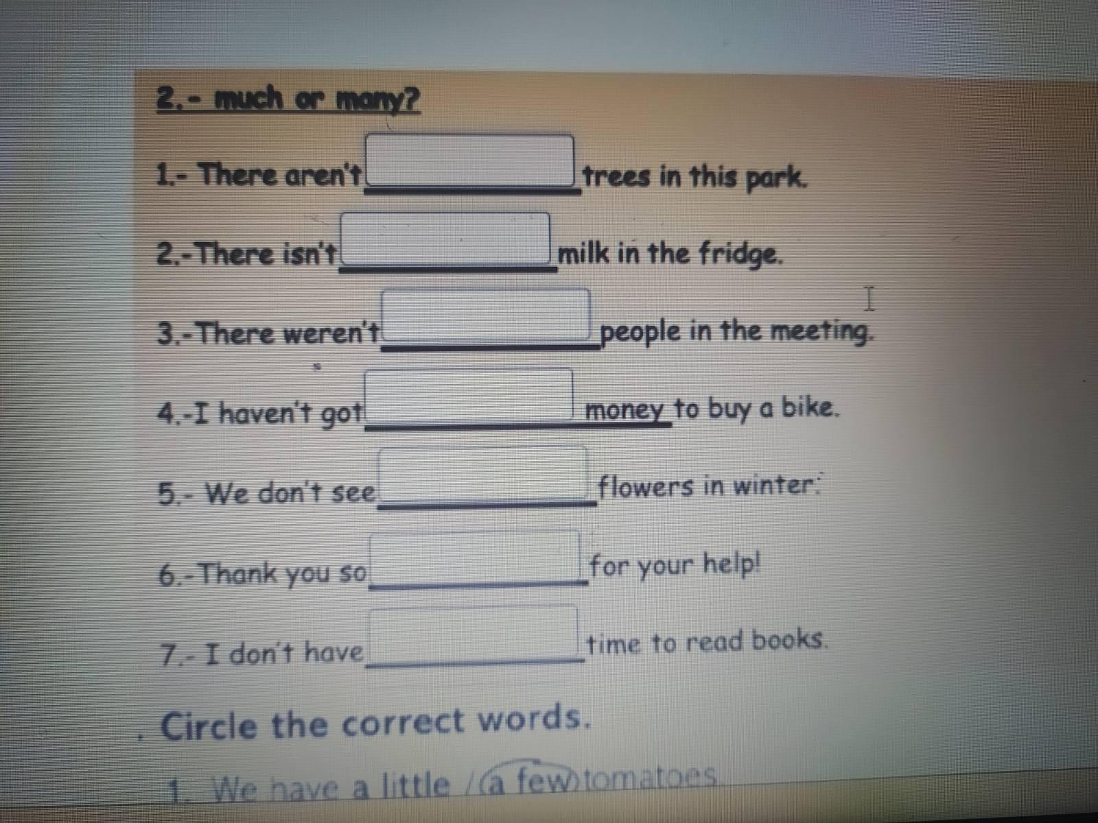 1 many 2 much 3 many 4 much 5 many 6 much 7 much