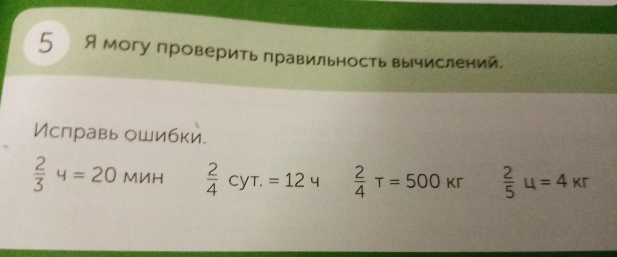 1) 2/3ч = 40 мин; 2) 2/4 сут = 12 часов; 3) 2/4т = 500кг; 4) 2/3ц = 40кг.