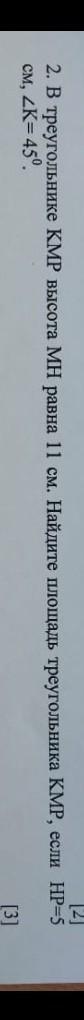в треугольнике kmp высота равна 11см. Найтите площадь треугольника если HP 5 см а угол K=45°