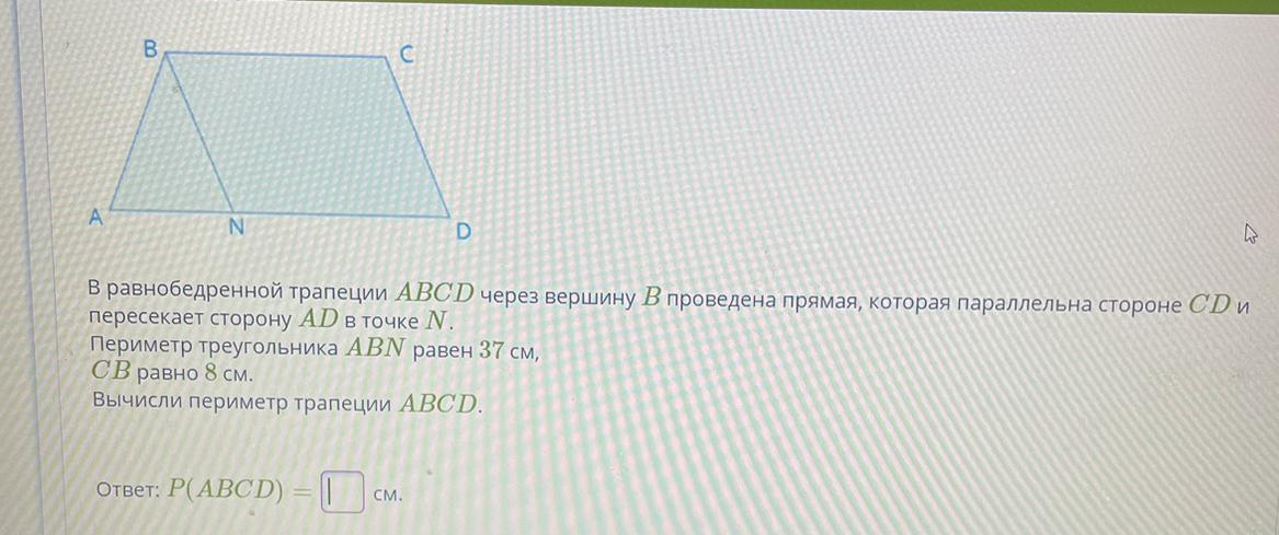BCDN-параллелограм, потому что имеет две попарно параллельные стороны => AB=BN=CD