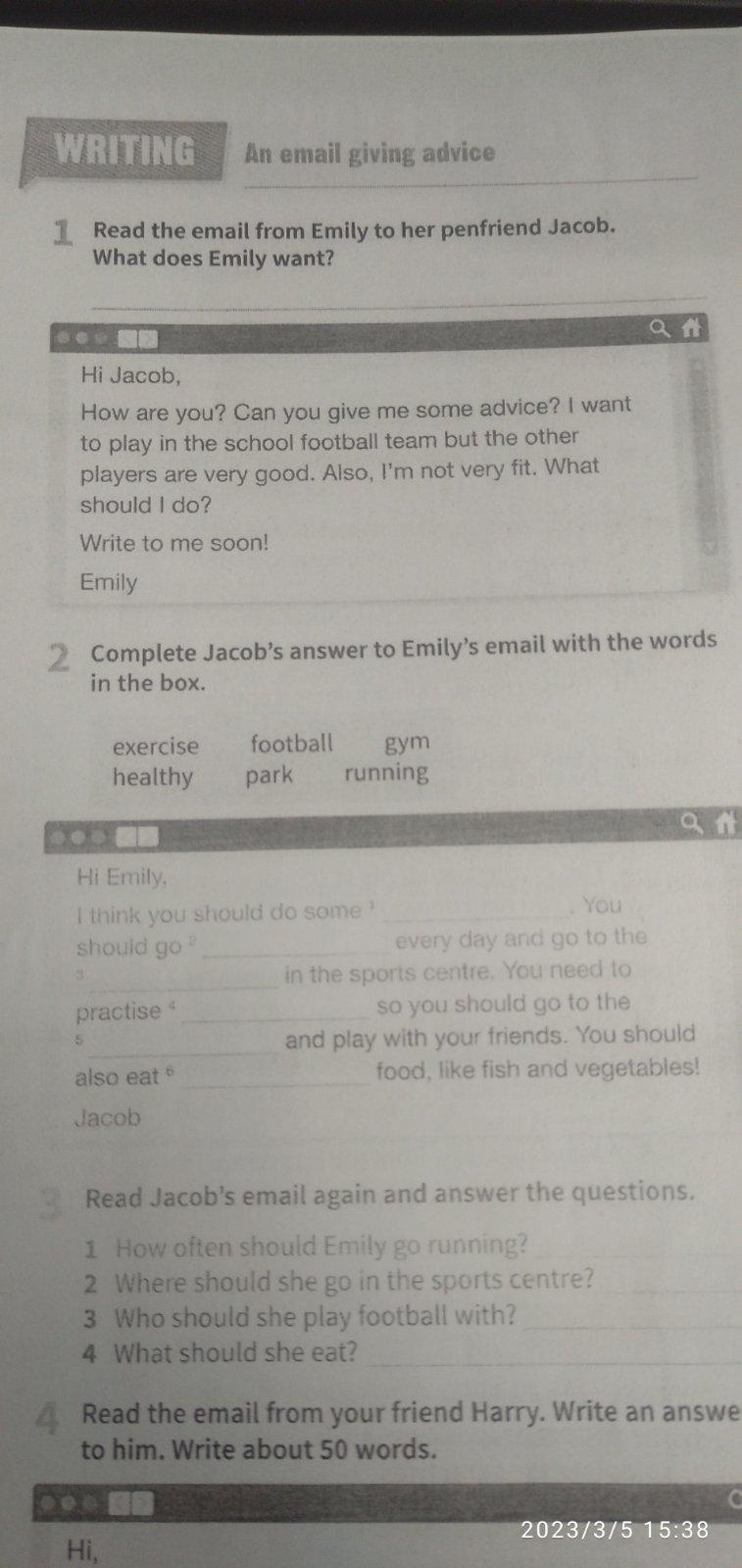 Emily wants her friend Jacob to give her an advice on how to become fit and get into the school football team.