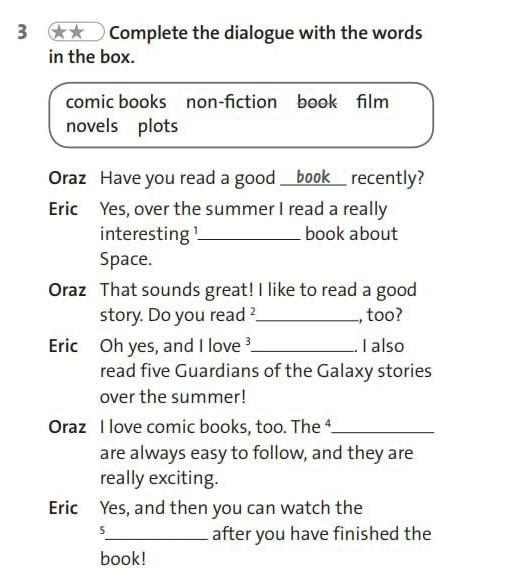 Ответ:1.Comic books 2.non-fiction 3.novels 4.plots 5.film