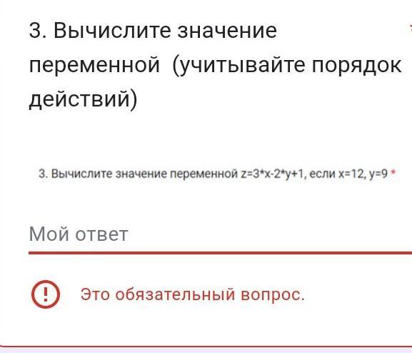 3. Вычислите значение переменной действий) (учитывайте порядок 3. Вычислите значение переменной z=3*х-2*у+1, если х=12, у=9* * дам 30 балов срочно осталось 17 минут