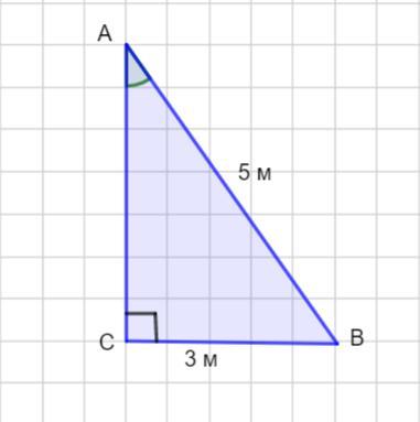 Меньший катет ВС = 3 м, а гипотенуза АВ =5 м.