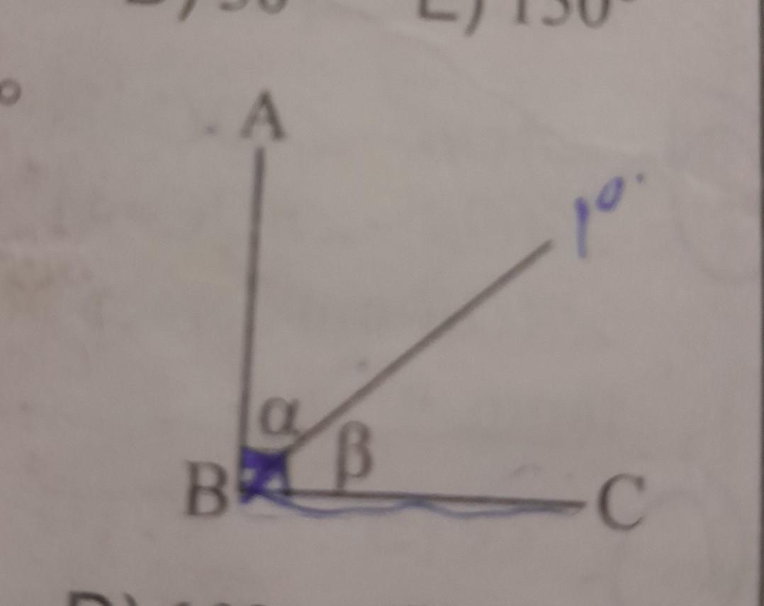 ABC düz bucaq və alfa+betta=10° olarsa alfa-nı tapın./Если угол ABC прямой и α-ẞ=10°, найдите