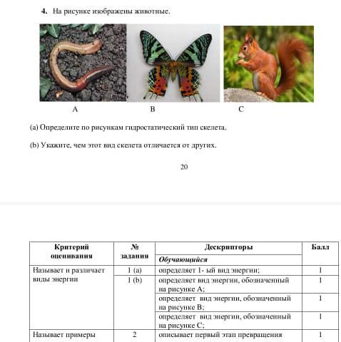 (а) Определите по рисункам гидростатический тип скелета.