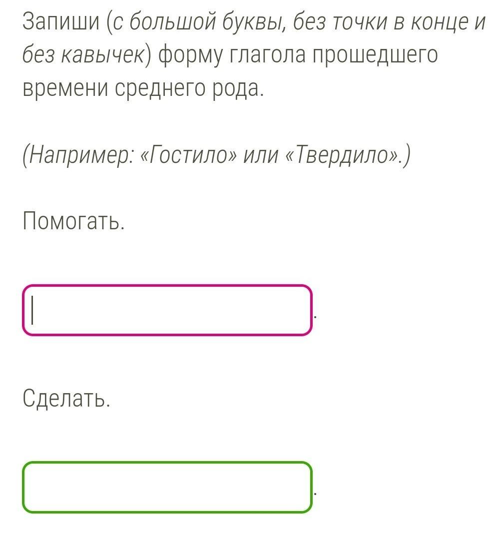 Запиши (с большой буквы, без точки в конце и без кавычек) форму глагола прошедшего времени среднего рода. (Например: