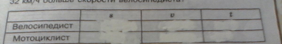 Велосипед проехал 72 км за 4 ч. Какое расстояние проедет за это время мотоциклист, если его скорости на 32км/ч больше скорости велосипедиста?