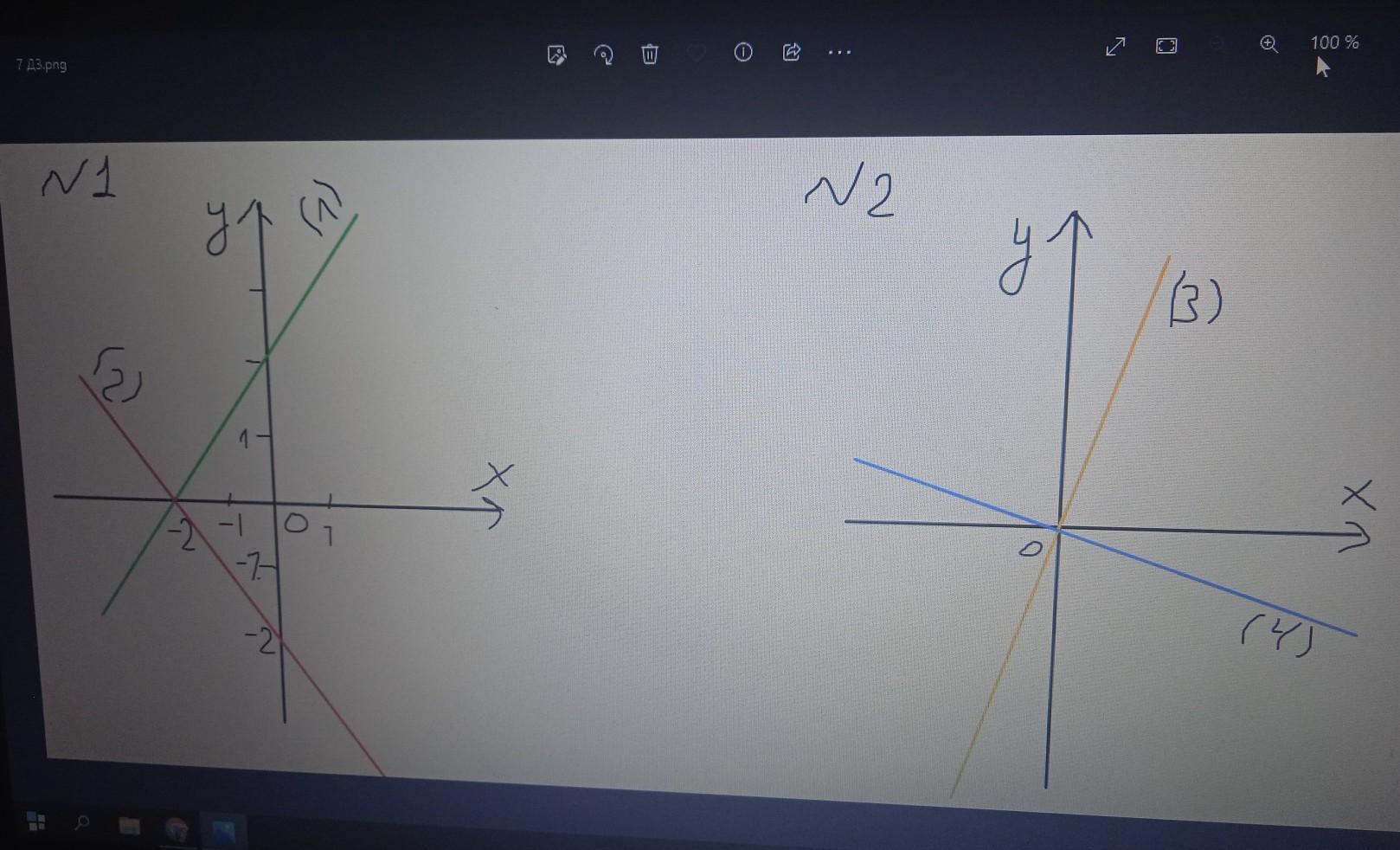 Ответ:Для лінійних функцій y=kx+b, коефіцієнт b є точкою перетину з осі Y. Таким чином, для графіків (1) та (2) значення коефіцієнту b будуть відповідно 2 та -3.